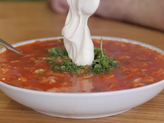 Grietinė puikiai dera su daugeliu patiekalų. Ji sušvelnina aštrių sriubų — barščių, soliankos, raugintų kopūstų sriubos — poveikį skrandžiui. Tiems, kurie kenčia nuo gastrito, tai ypač aktualu.
