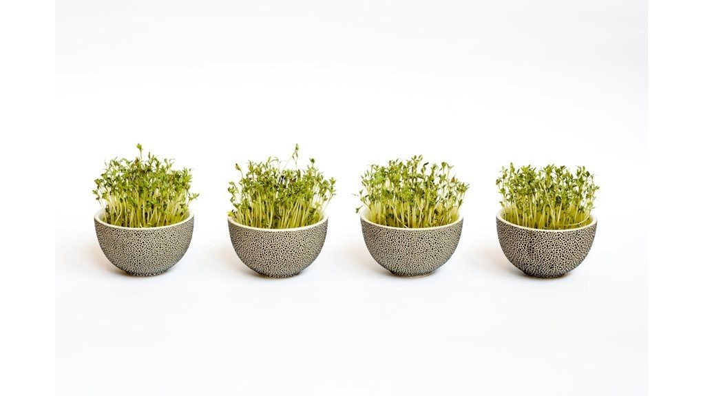 Ant palangės – jokios žemės. Tik keli maišeliai su popieriniais rankšluosčiais, kuriuose tyliai vyksta magija. Kas porą dienų – nauji daigai, paruošti persodinimui.