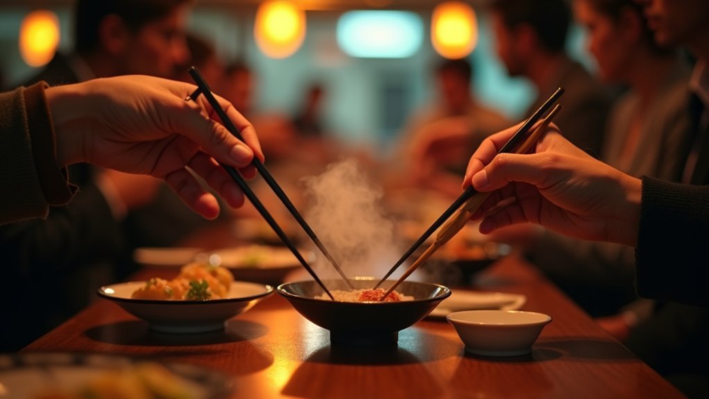 Azijos šalyse tai savaime suprantama. Restoranuose, kur nėra specialių lazdelių padėklų, būtent taip ir daroma. Tai ne tik higieniška, bet ir rodo pagarbą maistui bei stalo kultūrai.